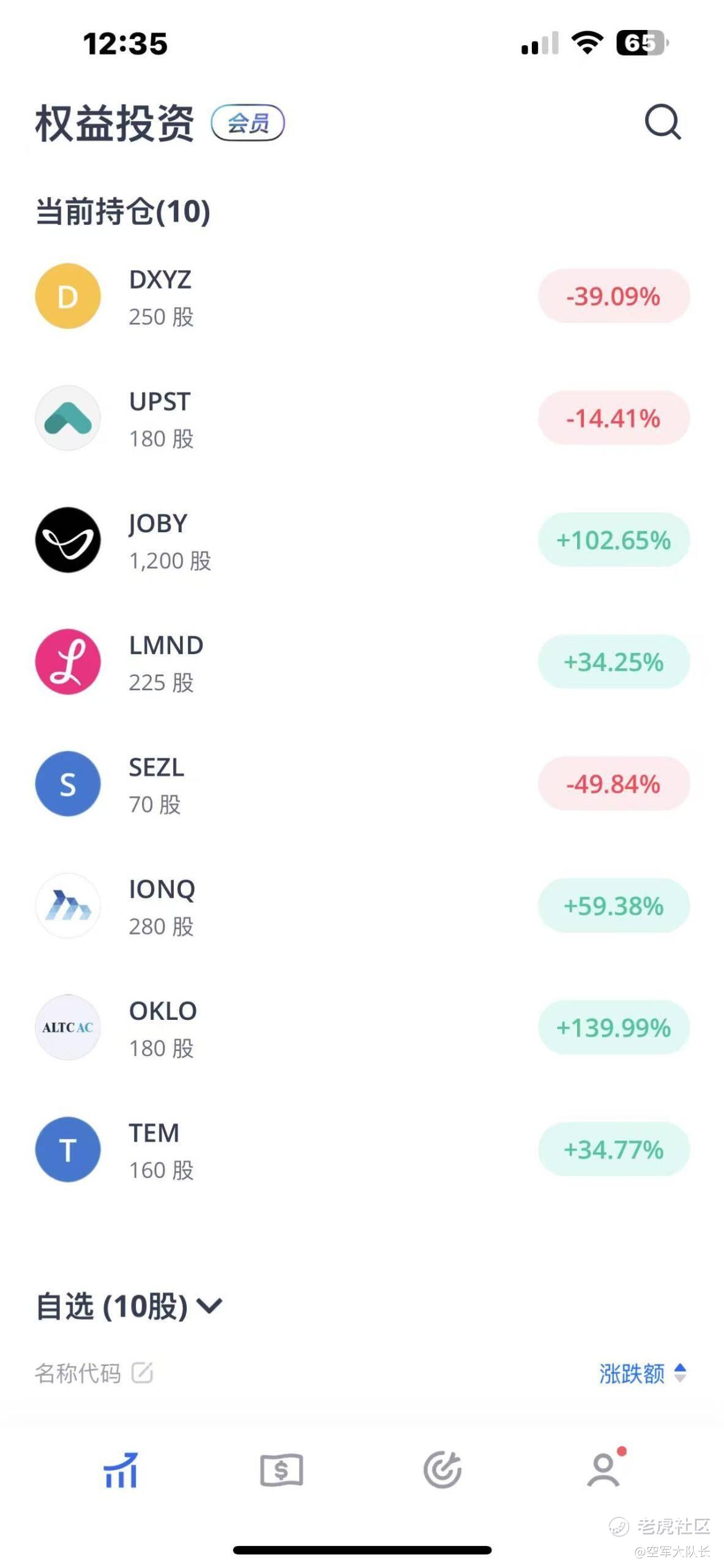 美联储宣布降息25个基点,美股反而没有大涨了,原因也简单,就是前面涨多了,纳斯达克连续四天都在创新高,非常强势,但是降息以后UPST还在跌,看来真的是违约率太高的原因,SEZL,DXYZ也不涨,说明这两个股票有问题,等我把分析报告都写完,估计要一个月,我再来决定要不要把这三个股票给割肉了,其实我现在就想割肉,只是割肉以后要买哪些股票,我不想换来换去,毕竟我做长线的,最好是一次性买到位,中间不要换来换去,这样大家好跟踪,我要是换来换去,大家都不知道怎么跟了,我为什么喜欢买一堆股票,因为这样好股票就不会错过,JOBY,OKLO,IONQ就大涨了,整体算起来我收益也有38%,我是6月27号开始的,当时要是满仓买英伟达,也有这个收益,但是满仓一个股票有时候有运气成分,而买十个股票不存在运气成分,就是买十几个股票,我肯定能压中好几个股票,这就是长线的优势,我为什么做短线失败了,其实今年短线我成功了20多个,就因为FIG一个失败了,就没有收益了,这就像考试,长线每次考50分就可以了,而短线考90分都不行,要求每次考满分,股票是预测的,并没有标准答案,就算有标准答案也做不到每次都对吧,何况预测每次都对就不可能了,所以我才叫大家把FIG割肉出来换成我现在说的13个股票,因为FIG涨上来的概率是50%,而13个股票个个涨上来的可能性是没有的,但是整体涨起来的概率就是百分百了,所以从概率上说,换成13个股票平均买的成功率更高,下面是我的实盘账户。