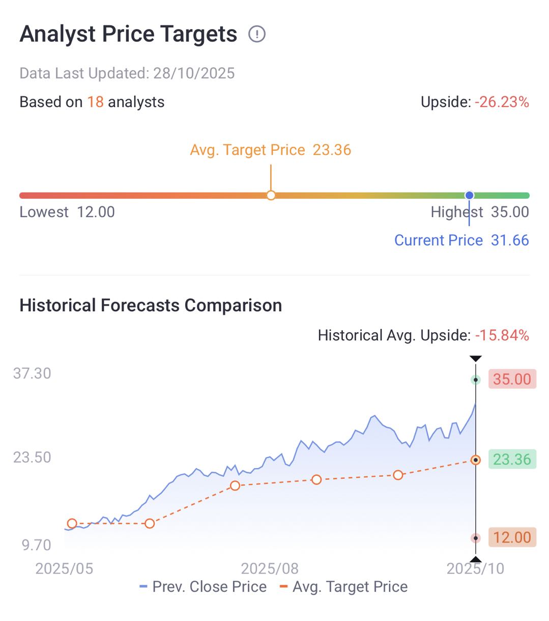 老虎国际APP综合呈现的多位分析师平均目标价显示,相较最新收盘价31.66美元,平均下行空间为26.23%,目标价23.66美元。