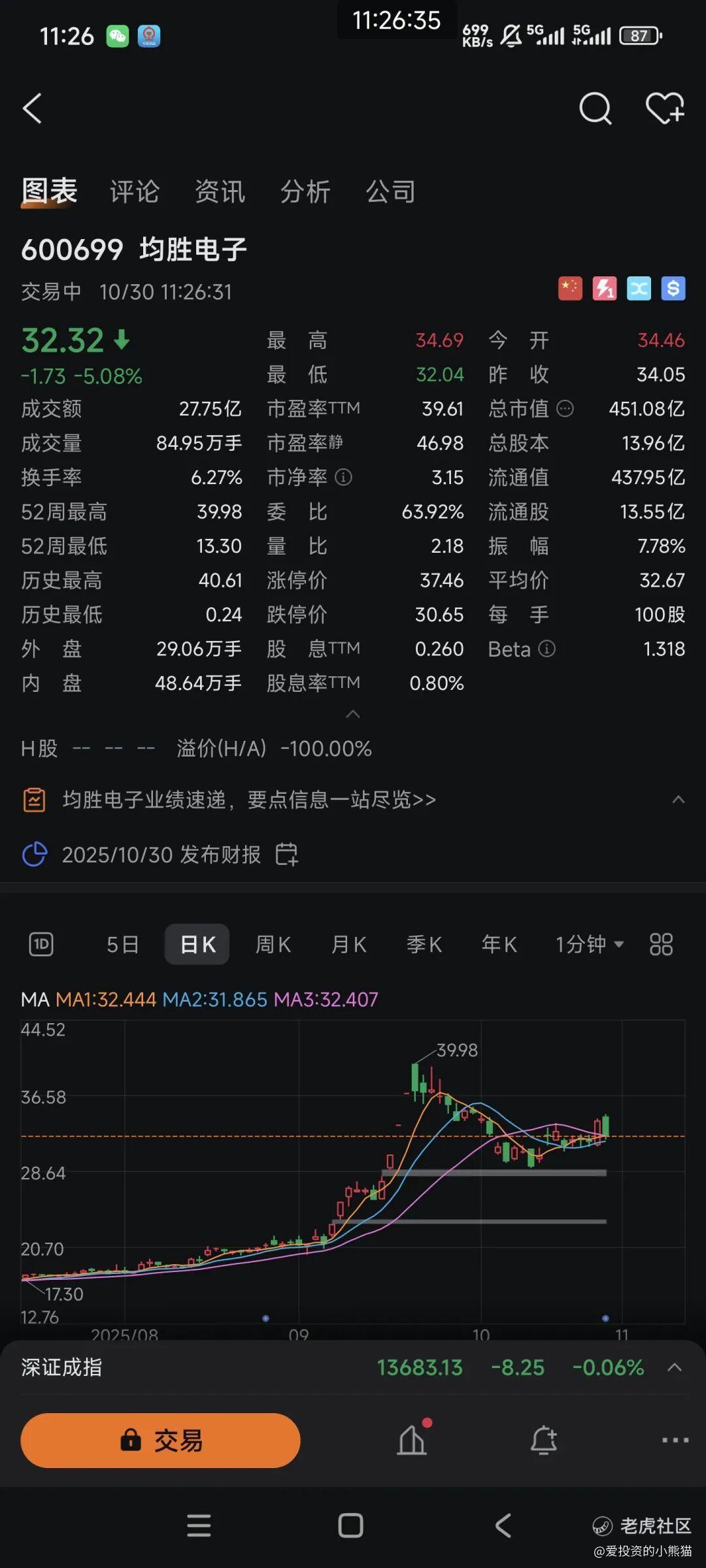 截至2025年10月28日,均胜电子A股(600699.SH)收盘价为31.79元人民币,按当日汇率换算为34.97港元;其H股(00699.HK)招股上限为23.60港元,较A股折价约32.51%,对应AH溢价率达48.18% 。这一溢价水平显著高于汽车零部件行业平均溢价(约20%-30%),主要受以下因素驱动: