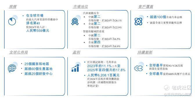公司已搭建平台,真正做到与全球整车厂同步研发、同步配置供应链、生产和销售网络。截至2025年4月30日,公司在中国和海外市场设有超过25个研发中心和超过60个生产基地,覆盖亚洲、欧洲和北美等主要汽车市场。2024年,公司的海外客户收入占总收入的74.7%。此外,公司从2021年至2024年连续四年在中国跨国公司100大及跨国指数中排名第一。