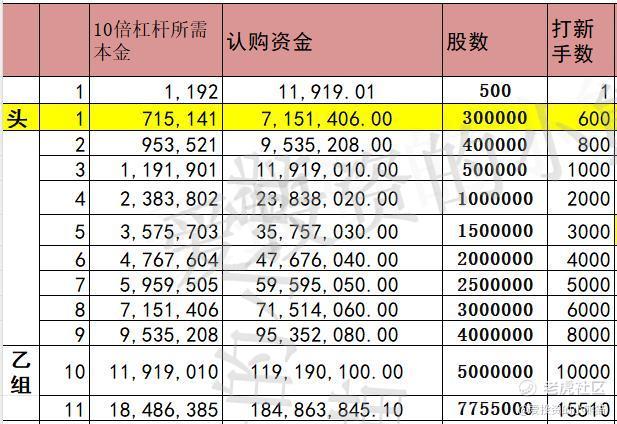 乙头需要认购资金716万,乙组的各档融资所需要的本金还有融资金额对应如下表: