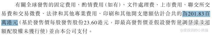然后这个票招股书上按发售价23.60港元计算,公开的上市所有开支总额约为2.02亿港元,募资额约36.60亿港元,占比约5.51%,开支相比募资额算是比较少了。