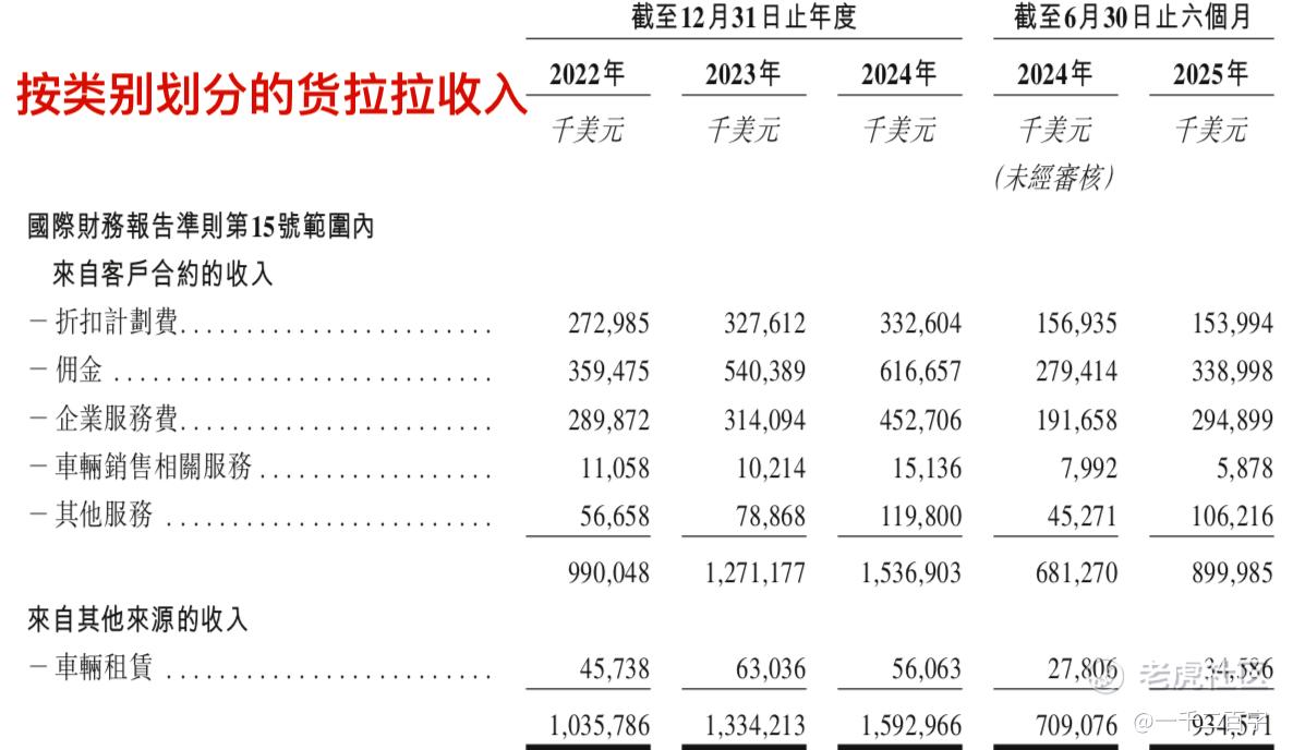 与内地市场的收入结构不同,货拉拉在境外市场的营收构成更简化,基本只包括货运平台收入和多元化物流服务两大类。而境外货运平台收入的变现形式主要是从订单交易GTV中抽取的佣金,我们在招股书里没有找到类似内地市场的“月费”表述。