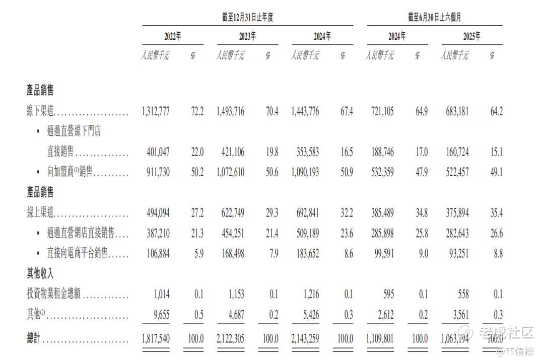 以2025年上半年为例,通过向加盟门店销售产品创造的收入为5.2亿元,超过线下直营店收入的3倍,占整体收入的49.1%。