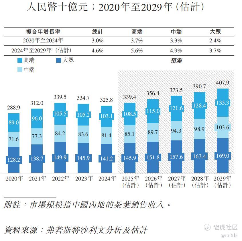 按照招股书,不管是过去几年的数据,还是未来五年机构的预测,高端茶叶的增速都更加快。