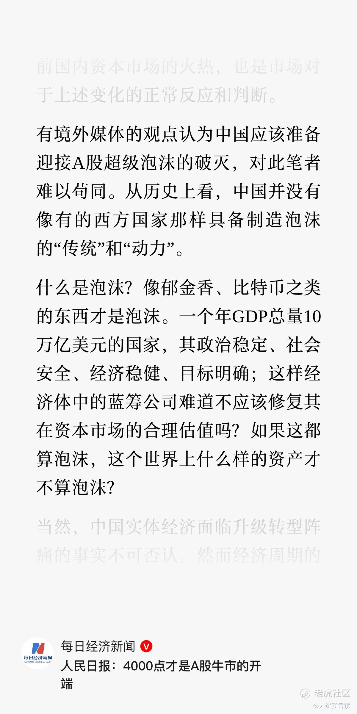 最近A股牛市站上4000点,导致十年前的一篇文章忽然火了。人民日报在2015年4月21日发表的文章《4000点才是A股牛市的开端?》。