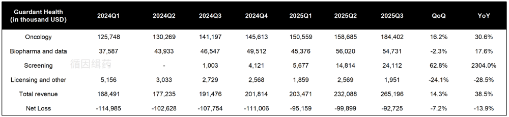 财报显示,Guardant Health 2025Q3营收2.65亿美元,同比增长38.5%,环比增长14.3%。