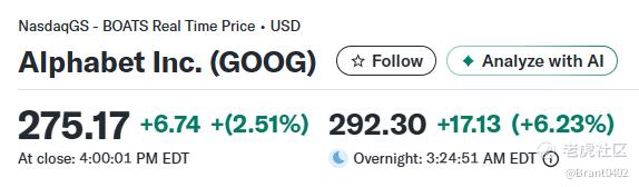 可以看到,AI不再只是成本,而开始成为现金流引擎。投资者因此用脚投票:Alphabet股价盘后飙升6.23%,刷新历史新高。