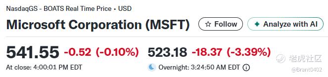 Microsoft(MSFT)下跌3.39%;