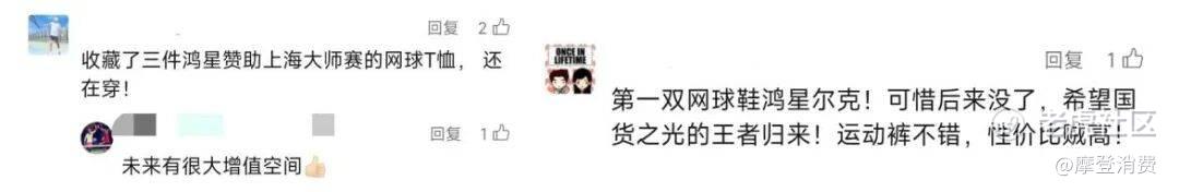 这种“坚守”也转化为了实实在在的品牌效应。有许多用户在社媒分享种草笔记,称“是因为看网球赛知道鸿星尔克的,后来买了它家的鞋服”;还有用户珍藏着鸿星尔克赞助上海大师赛时的网球T恤,甚至第一双网球鞋也是鸿星尔克的。