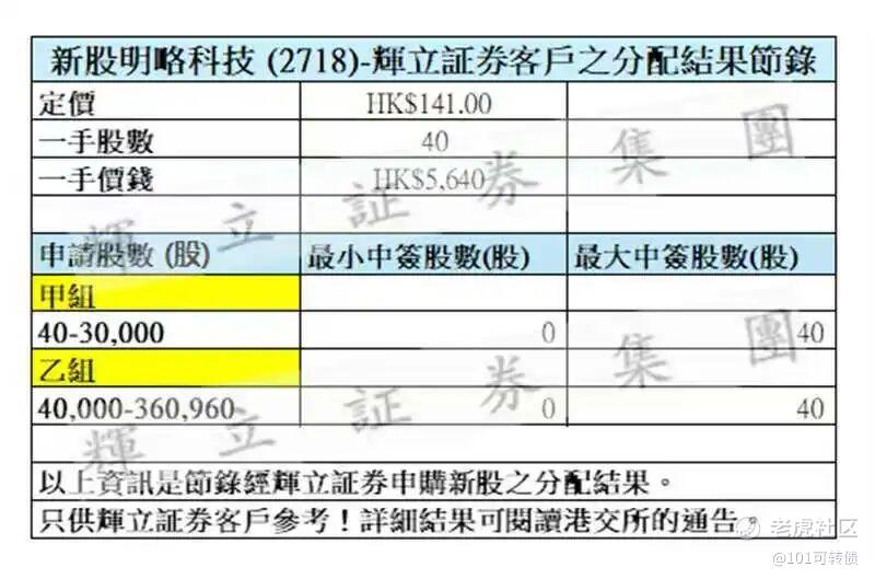 明略科技(2718)出分配结果了,全员抽奖;定价:141,一手40股;恭喜中签的老板们!我没中,账户都覆灭。