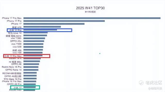 第40周某国产手机品牌借着刚发布的热度,销量超过了苹果的iPhone17,大肆宣扬击败了iPhone17,然而就在接下来的第41周它的销量就已落后于iPhone17了,凸显出它缺乏足够的耐力,根本无法维持长时间的热度,至于它发布第一周的销量超过iPhone17都懂的。