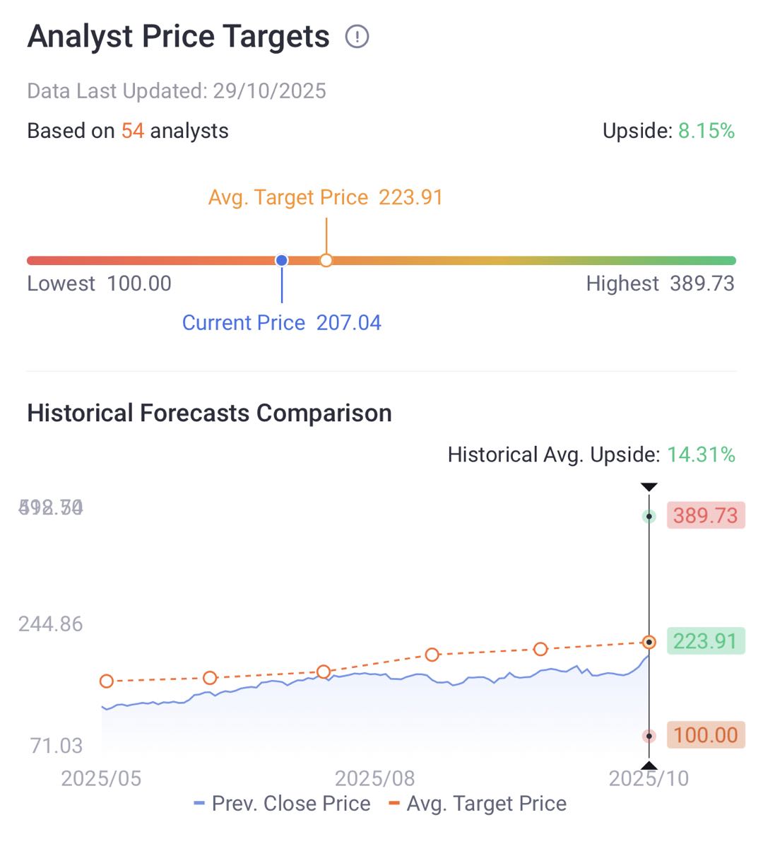 截至2025年10月29日,这十家公司的股价创下历史新高,反映出科技与工业领域整体表现强劲,主要受益于人工智能(AI)、云计算和数字化转型的持续推动。NVIDIA与AMD在AI基础设施芯片方面表现领先,实现大幅营收增长;Alphabet、Apple和Palantir则在云服务、数字生态系统和AI分析领域持续发力。Broadcom与Micron受益于企业基础设施和存储器市场需求增长,其中Broadcom还启动了100亿美元股票回购计划。Shopify与Lam Research分别在电商赋能与半导体设备方面展现出稳健增长。唯一例外是Caterpillar,其营收同比下滑,反映出工业领域面临周期性压力。总体来看,AI与基础设施需求仍是推动各行业增长的关键动力。