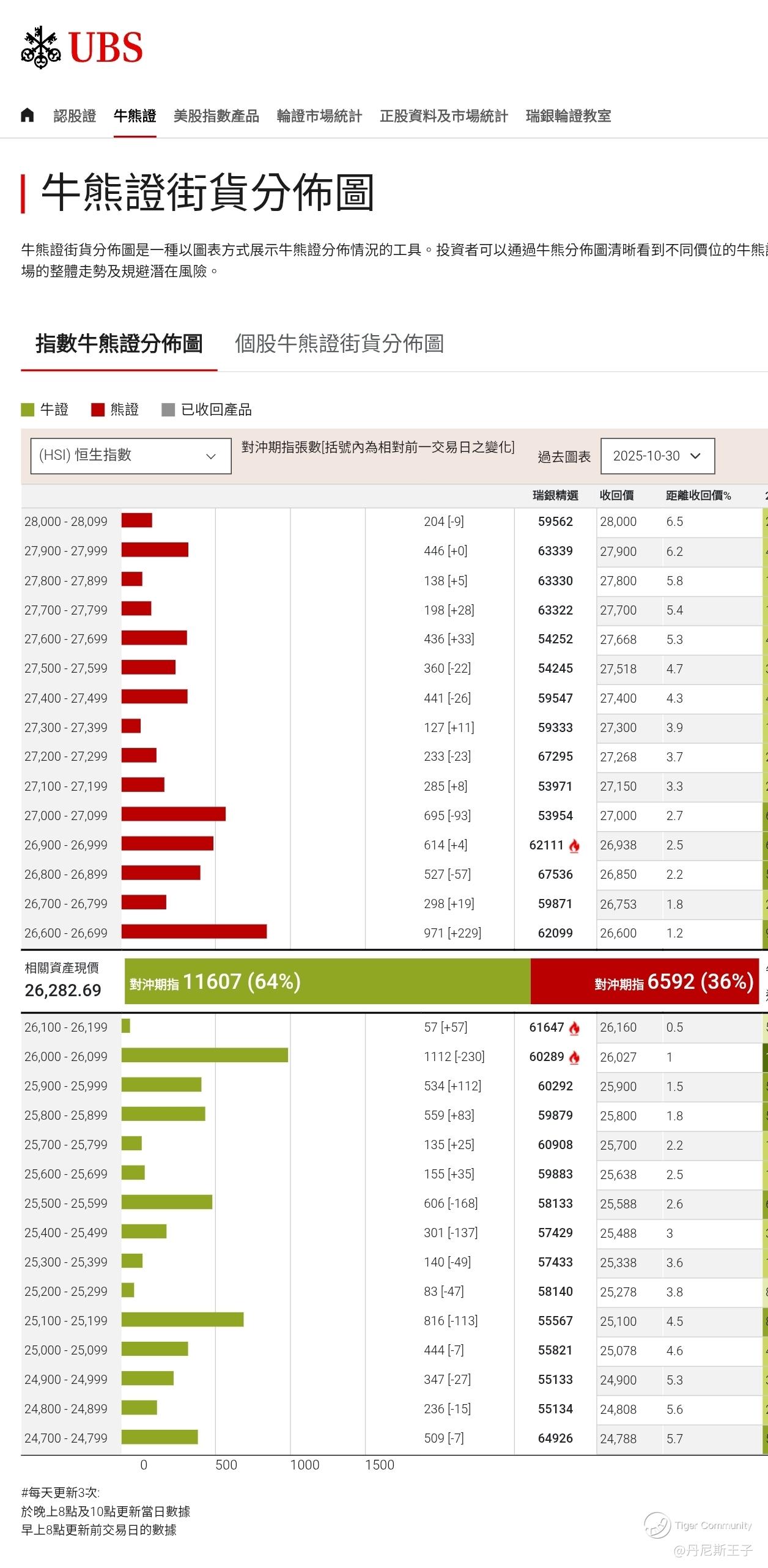 于10月31日至11月3日交易日上市之牛熊证分布图:
