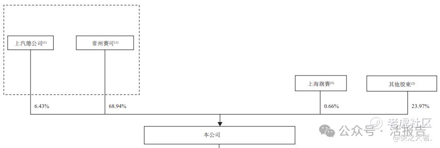 上汽总公司直接持股6.43%,并通过常州赛可持股68.94%,合计75.37%;