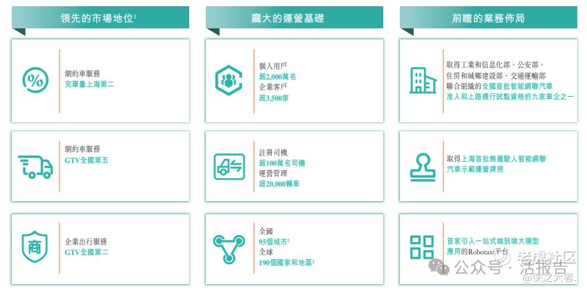 公司是中国领先的全场景智慧出行综合体,通过提供网约车服务、车辆租赁服务、车辆销售及Robotaxi服务,打造覆盖个人出行、企业出行以及未来出行(即Robotaxi服务)中多元场景需求的一站式出行服务平台。
