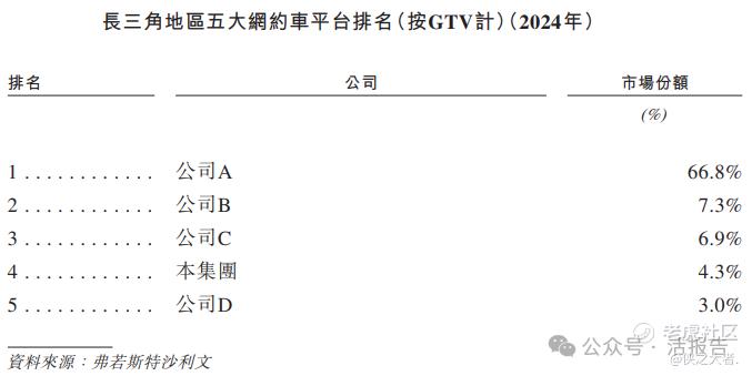 于2024年,按GTV计,公司在中国网约车平台中排名第五,在长三角地区排名第四。在上海,以完单量计,公司于2024年在网约车市场位列第二。