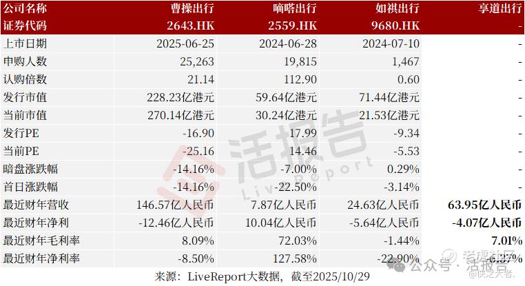 2025年10月28日,享道出行首次向港交所递交招股书,拟在香港主板上市,联席保荐人为中金公司、国泰君安国际。公司是中国领先的全场景智慧出行综合体,2025年上半年收入30.13亿元,净亏损1.15亿元,毛利率11.33%。