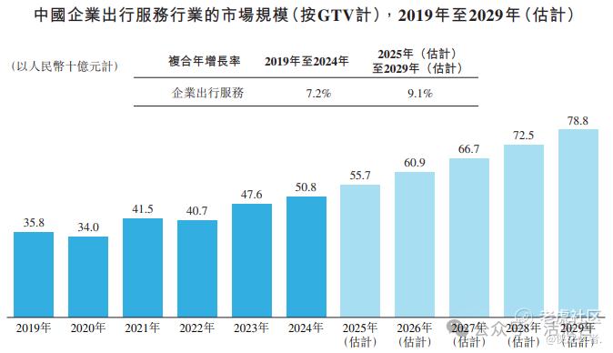 按GTV计,于2024年,中国企业出行服务行业的市场规模达到人民币508亿元,预计2025年至2029年将以约9.1%的复合年增长率增长。