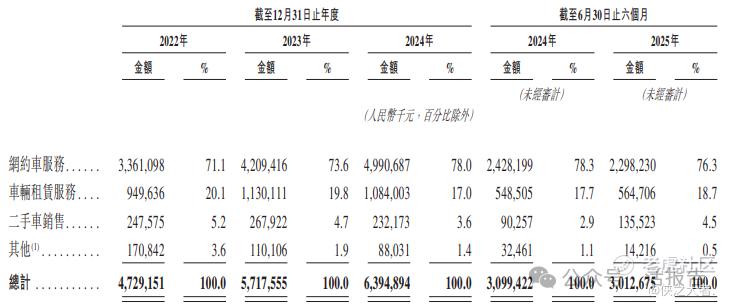 ·网约车服务:通过自有应用程序享道出行APP向全国范围内的个人和企业提供网约车服务。截至2025年6月30日,公司的网约车服务已覆盖中国85个城市。2024年,公司实现日均订单超过60万单,GTV超过人民币55亿元。按2024年完单量计,公司是上海第二大网约车平台。