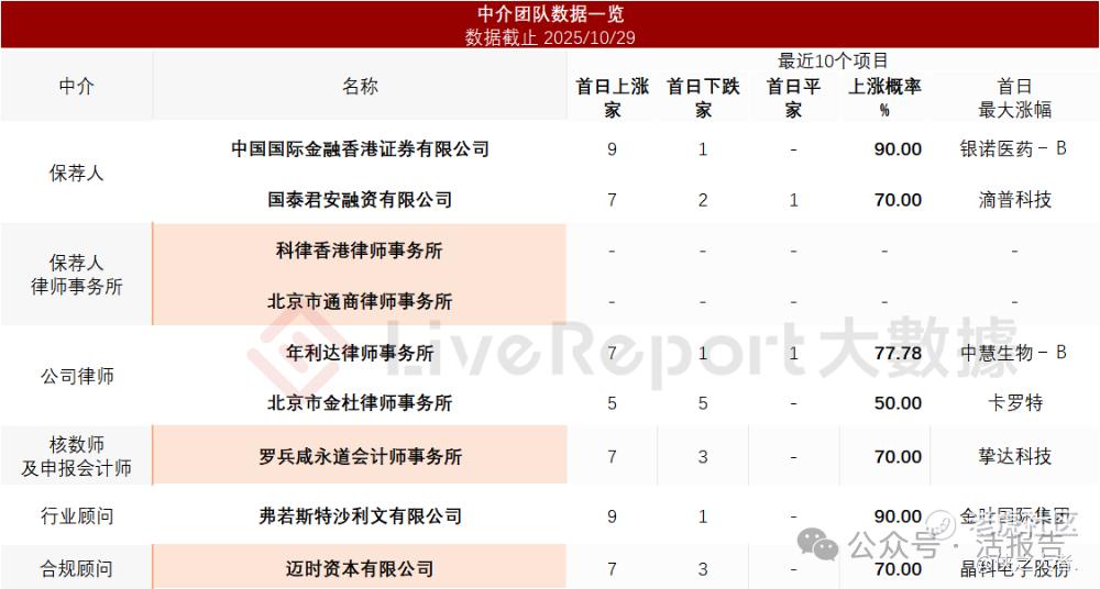 据**大数据统计,享道出行中介团队共计9家,其中保荐人2家,近10家保荐项目数据整体表现不错;公司律师共计2家,综合项目数据整体普通。整体而言中介团队历史数据表现过得去。