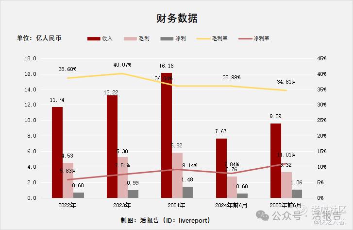 公司是一家专注于西梅产品的果类零食公司,2024年收入16.16亿元人民币,毛利率36.04%,净利润1.48亿元,同比增长49%;2025年上半年收入9.79亿元,净利润1.06亿元。