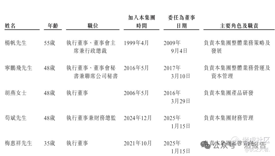 董事会包括五名执行董事、一名非执行董事及三名独立非执行董事。其中杨帆为公司董事会主席、执行董事及行政总裁。