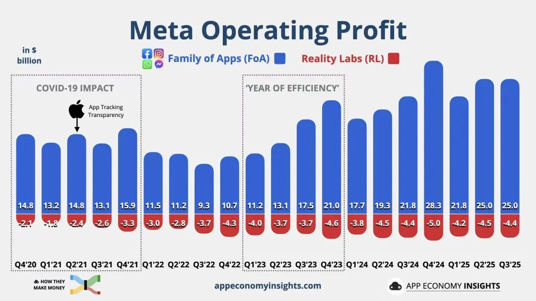 元宇宙营收为4.7亿美元,同比增74%,高于预期的4.2亿美元,运营亏损44亿美元,基本持平分析师预期的42~45亿美元;