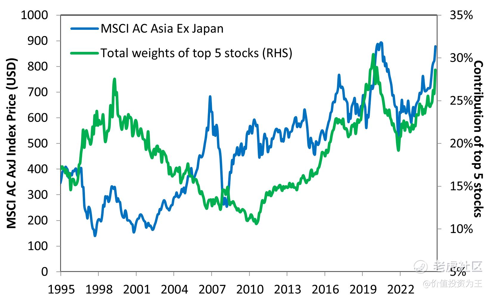 全球股市的集中度在AI爆发下都快速集中,美股是7大科技巨头,台湾是台积电一家占45%的权重,韩国的SK海力士和三星占30%权重,创业板宁德时代一家就占了15%,加上中际旭创、新易盛这些,创业板被锂电和CPO给绑架了!