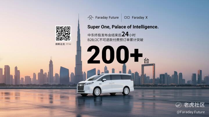 阿联酋时间10月31日(北京时间10月31日)——总部位于美国加州的全球共享智能电动出行生态公司Faraday Future Intelligent Electric Inc.(纳斯达克代码:FFAI)(以下简称“Faraday Future”或“FF”或“公司”)今日宣布 FX Super One在中东终极发布会后取得远超预期的订单量。在上市发布会结束后24小时内,公司累计收取付费预订单200余台,体现出B2B合作伙伴对FX Super One的超高热情和信心。