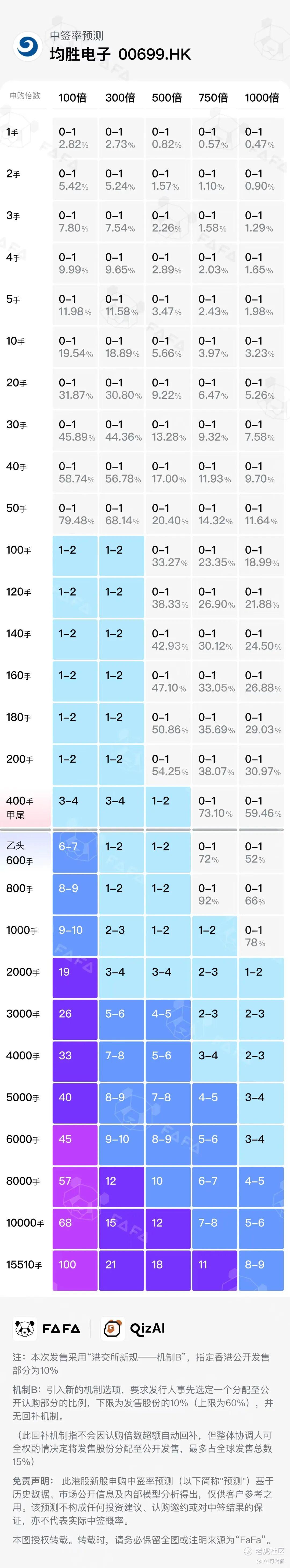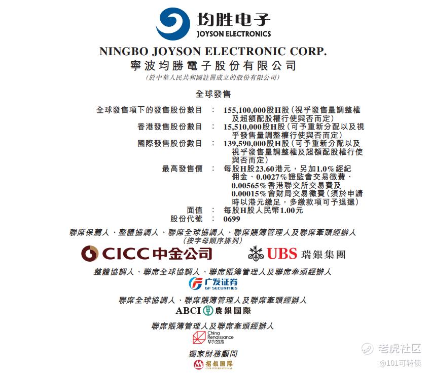均胜电子此次采用机制B公开发售模式,回拨10%;全球发售发行1.55亿股,香港公开发售部分仅占10%,即1551万股,一手是500股,甲乙组共计31020手;本次由中金与瑞银联合保荐,业绩一般,还可以,有绿鞋,有基石,但基石一般;目前均胜电子较A股有约33%的折价,按最高发售价23.60港元计算,均胜电子港股发行后总市值约365.98亿港元,对应市盈率约35.72倍。相比国际同类公司如博世(PE约25倍),均胜电子估值略显偏高。