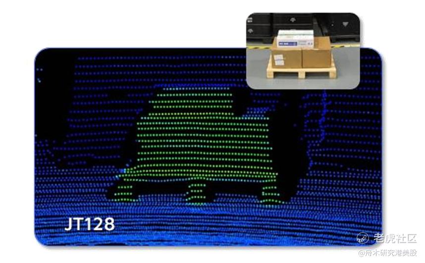 JT128 具备 128 线超高线数,可为无人叉车提供高清的实时感知,精准识别仓库中的物体细节,保障设备的精准作业。