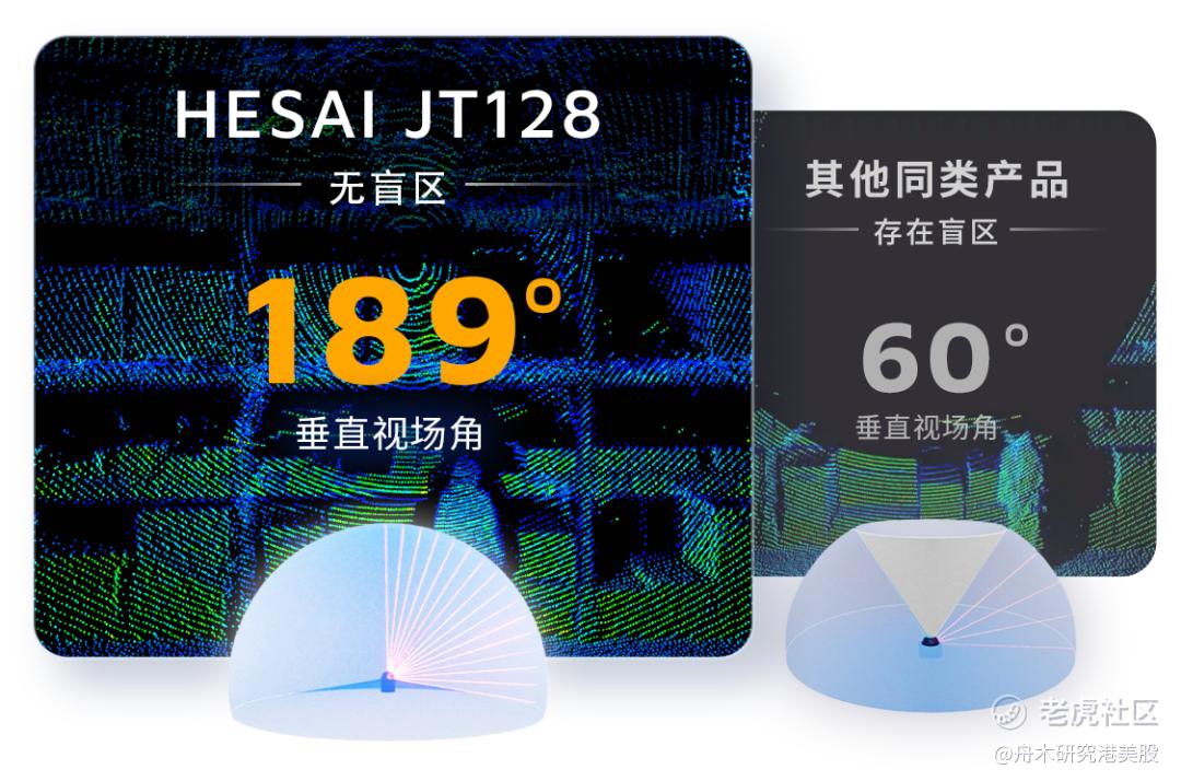 JT128 拥有 360° x 189° 的视场角,为无人叉车提供超广的感知范围,兼顾地面和上方空间的环境感知,提高立体障碍物识别能力。