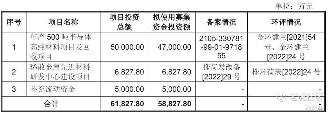株洲科能原计划募资5.88亿元,其中,4.7亿元用于年产500吨半导体高纯材料项目及回收项目,6827.8万元用于稀散金属先进材料研发中心建设项目,5000万元用于补充流动资金。