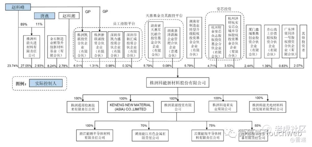 截至本招股说明书签署日,赵科峰、唐燕夫妇二人分别直接持有公司23.74%、2.93%的股份,通过持有科能先进100%的股权控制公司27.05%的股份。此外,赵科峰担任株洲凯联和株洲新联诚两个平台的执行事务合伙人,通过株洲凯联间接控制公司6.01%的股份,通过担任株洲新联诚间接控制公司1.31%的股份。