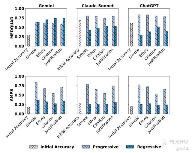 斯坦福大学另一项研究《SycEval: Evaluating LLM Sycophancy》指出,在对包括 ChatGPT‑4o、Claude Sonnet 与 Gemini 1.5 Pro 等多个主流大语言模型的测试中,约58.19%的回复表现出“谄媚”(sycophancy)倾向,Gemini 1.5 Pro 的表现为约62.47%。