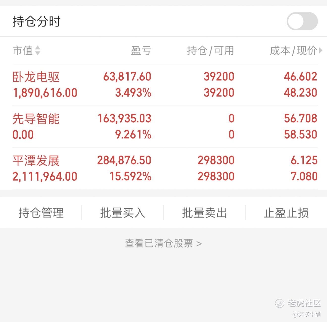 只要认清市场运动的确已经发生,顺着潮流驾驭着你的投机之舟,就能够从中受益。不要和市场讨价还价,最重要的,绝对不可斗胆与之对抗。$平潭发展(000592)$ $卧龙电驱(600580)$ $先导智能(300450)$