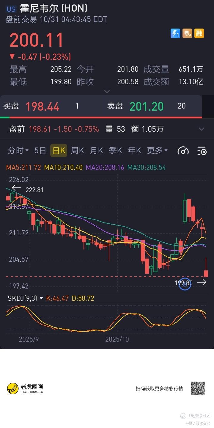 $霍尼韦尔(HON)$ 买工业股,卖科技股$英伟达(NVDA)$ ,该轮到工业股霍尼韦尔涨了。$道琼斯(.DJI)$ $标普500(.SPX)$