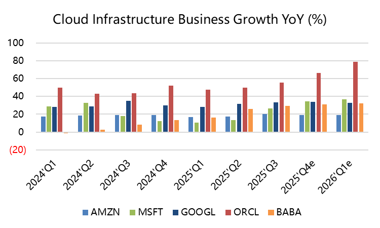 三大云段位margin强劲,但分化——GOOGL GCP margin扩张最快(AI ROIC显现),MSFT稳定(效率抵消投资),AMZN收缩(重投AI基础设施)。剔除后,AI需求推动规模经济,但持续Capex可能进一步压margin(e.g., MSFT供给约束延至FY26末)