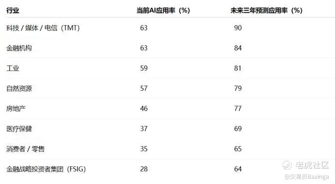 高盛预测,这一比例将在明年升至50%,未来三年有望达到74%。当前,AI的主要落地场景集中在**数据分析与预测(65%)以及流程自动化(56%)**等方面。