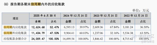 2022-2024年及2025年上半年,公司应收账款账面余额分别为8715.62万元、3846.42万元、1.65亿元、2.41亿元。而2024年及2025年上半年,公司应收账款账面余额大幅上涨的原因,主要系中海油客户尚未回款所致,并且已经发生逾期。