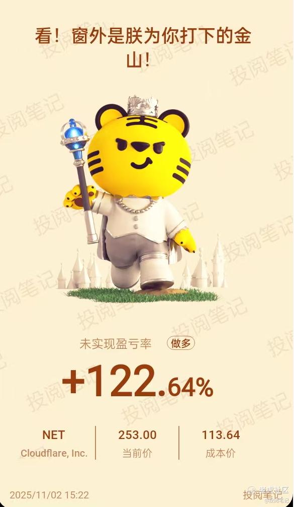 NET这次持仓数量相比上次不变,收益率大幅增长:+86.86%→+122.64%;