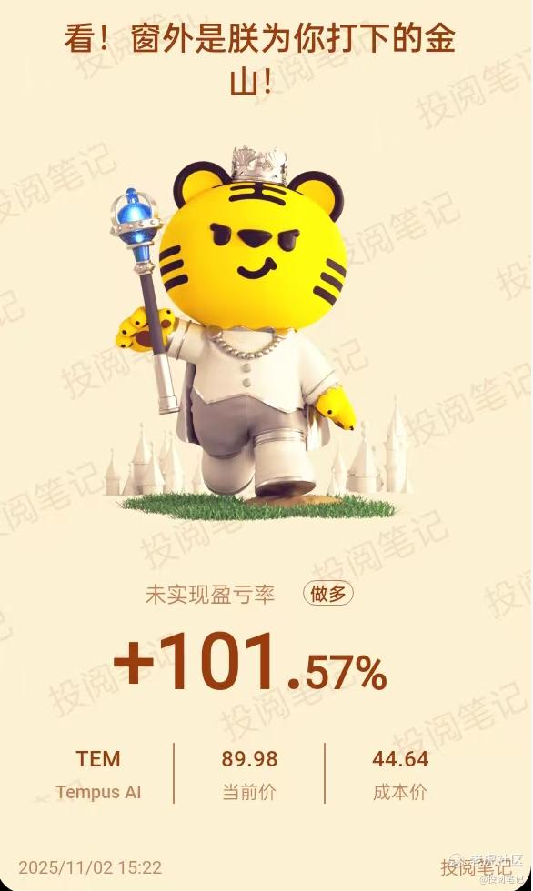TEM这次持仓数量相比上次不变,收益率大幅增长:+82.01%→+101.57%;