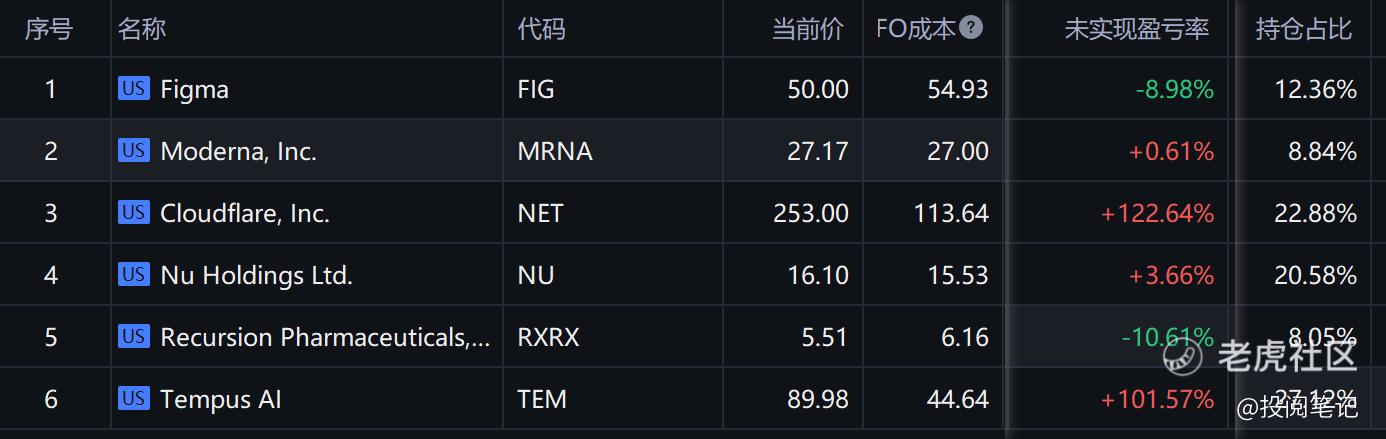 $Cloudflare, Inc.(NET)$ $Tempus AI(TEM)$ $Nu Holdings Ltd.(NU)$ $Figma(FIG)$ $Recursion Pharmaceuticals, Inc.(RXRX)$