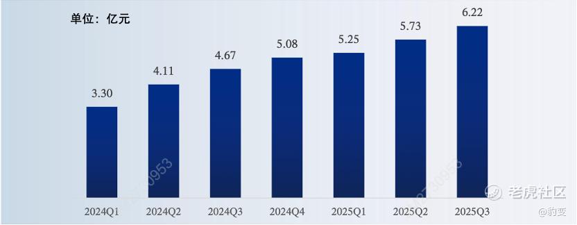 前三季度,公司实现营收17.2亿元,同比增长42.3%;若聚焦季度维度,营收更始终保持环比增长态势。其中,第三季度营收6.2亿元,环比增长8.7%——这一持续增长的节奏,让市场清晰看到其业绩的可持续性。