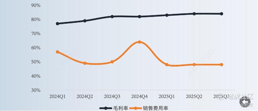 另一方面,费用管控成效显著。销售费用率连续季度下降,第三季度为47.7%,较第二季度的48.1%继续收窄;从全年维度看,今年前三季度综合销售费用率降至47.8%,较去年同期的51.5%下降3.7个百分点。