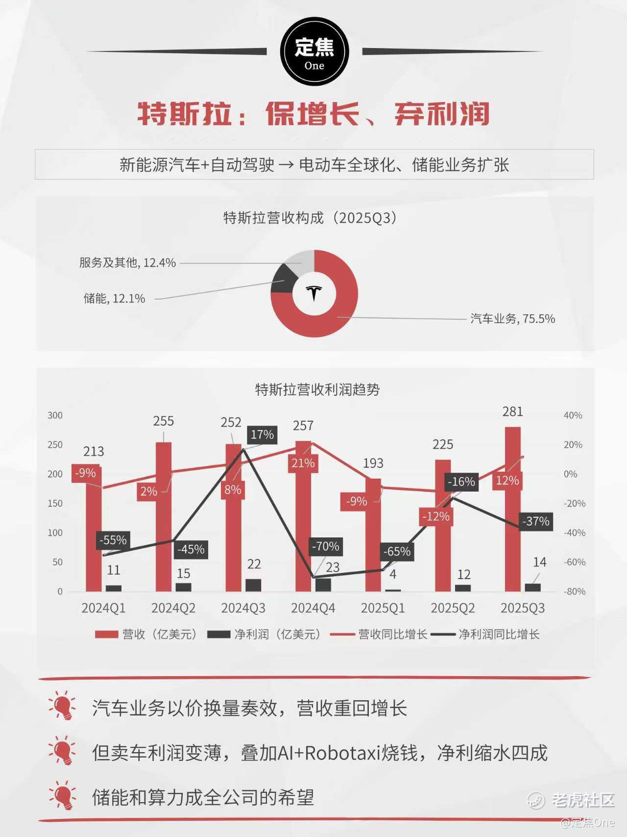 特斯拉因卖车业务“以价换量”,及重注投入AI和Robotaxi,净利润缩水近四成,净利率在“七姐妹”中垫底。储能和算力被认为是新的希望。