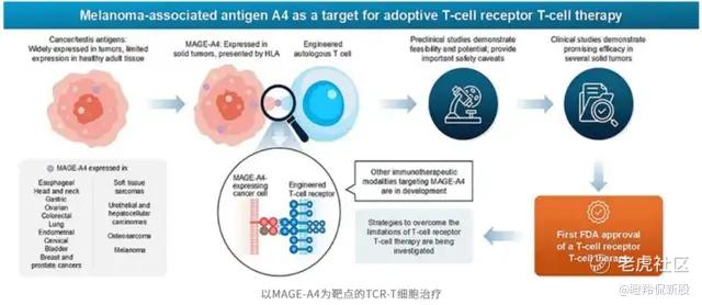 目前MAGE-A4 TCR-T路径已经验证了成药性,2024年8月Adaptimmune公司的Tecelra获得FDA批准用于治疗晚期滑膜肉瘤,值得注意的是这款药物是基于滑膜肉瘤中出色的疗效提前获得FDA加速批准。