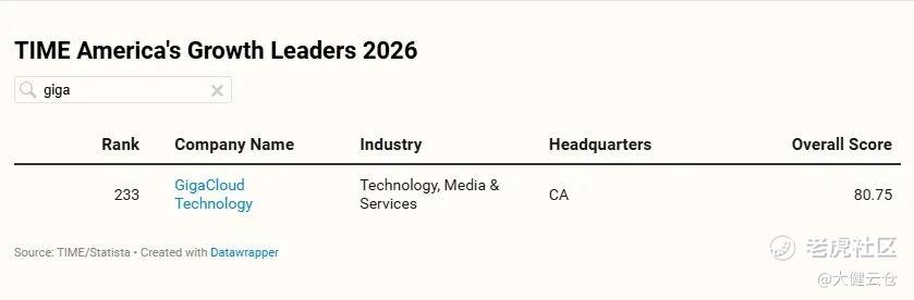 2025年10月27日,全球领先的从事自主研发并提供大件商品跨境B2B交易解决方案的企业——大健云仓(GigaCloud Technology Inc,纳斯达克股票代码:GCT)宣布入选美国《时代》杂志 “2026年最具成长性企业”(America’s Growth Leaders 2026)排行榜。该榜单是一项极具权威性的排名,表彰在业绩增长、财务稳健及股票表现方面均展现卓越的企业。