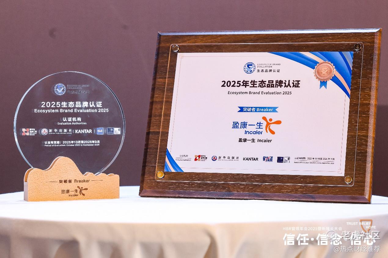 在人工智能与产业深度融合的今天,生态品牌正成为企业实现可持续增长与高质量发展的重要路径。10月31日,在以“AI赋能增长,生态共创未来”为主题的2025年HBR管理年会暨第四届生态品牌认证颁奖典礼上,盈康一生凭借在大健康领域的持续创新与实践,再度荣获“生态品牌突破者”认证。